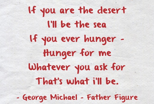 "If you are the desert I'll be the sea If you ever hunger - Hunger for me Whatever you ask for That's what i'll be."