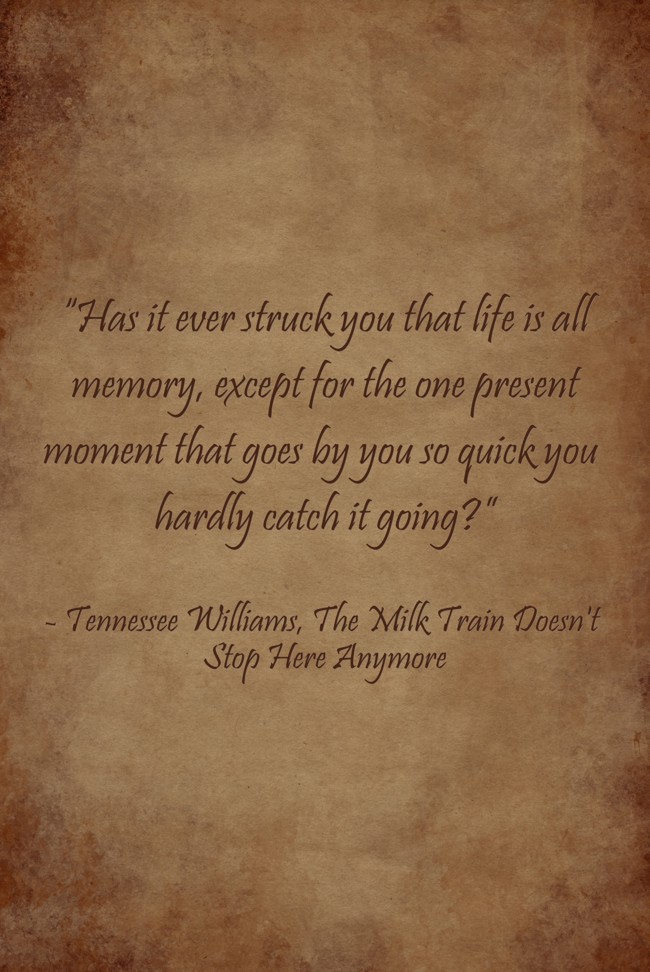 - Tennessee Williams, The Milk Train Doesn't Stop Here Anymore