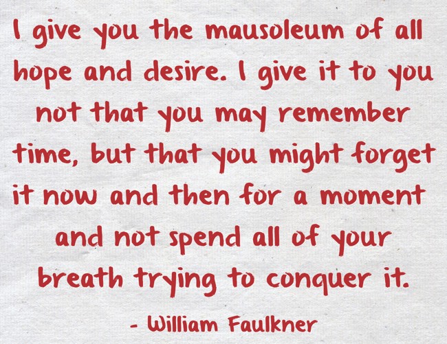 "I give you the mausoleum of all hope and desire. I give it to you not that you may remember time, but that you might forget it now and then for a moment and not spend all of your breath trying to conquer it."