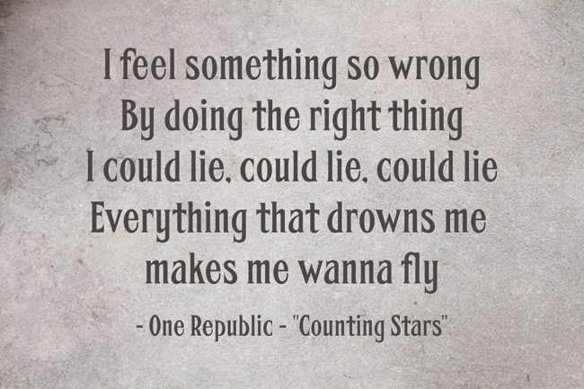 "I feel something so wrong By doing the right thing I could lie, could lie, could lie Everything that drowns me makes me wanna fly "