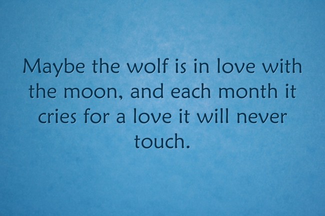 "Maybe the wolf is in love with the moon, and each month it cries for a love it will never touch."