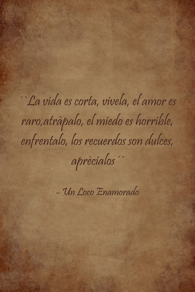 "``La vida es corta, vivela, el amor es raro,atràpalo, el miedo es horrible, enfrentalo, los recuerdos son dulces, aprècialos´´"