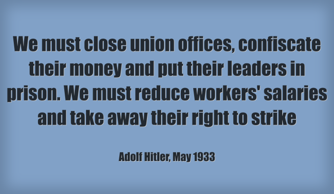 "We must close union offices, confiscate their money and put their leaders in prison. We must reduce workers' salaries and take away their right to strike"