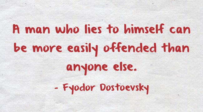 "A man who lies to himself can be more easily offended than anyone else."