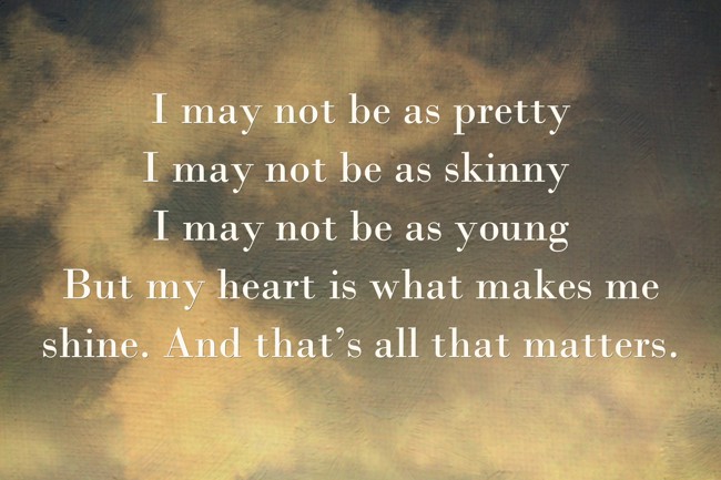 "I may not be as pretty I may not be as skinny I may not be as young But my heart is what makes me shine. And that’s all that matters."