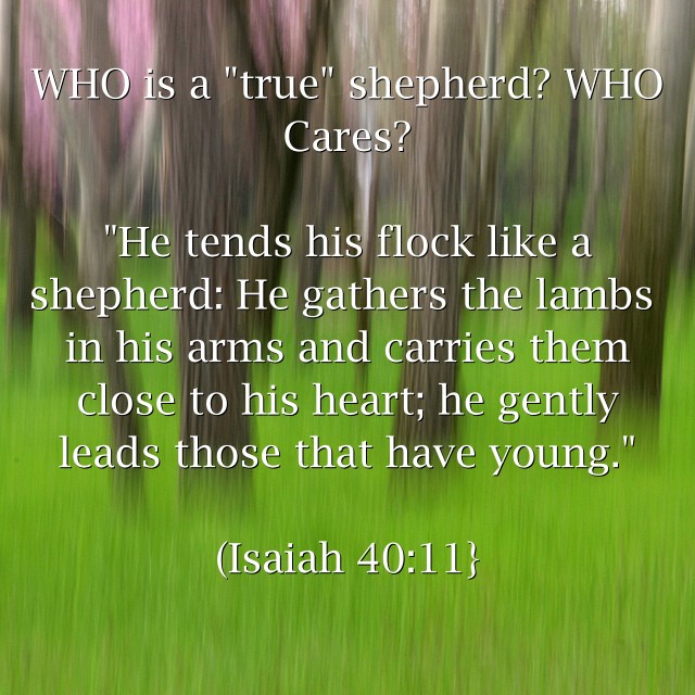 "WHO is a "true" shepherd? WHO Cares? "He tends his flock like a shepherd: He gathers the lambs in his arms and carries them close to his heart; he gently leads those that have young." (Isaiah 40:11}"
