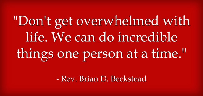 ""Don't get overwhelmed with life. We can do incredible things one person at a time.""