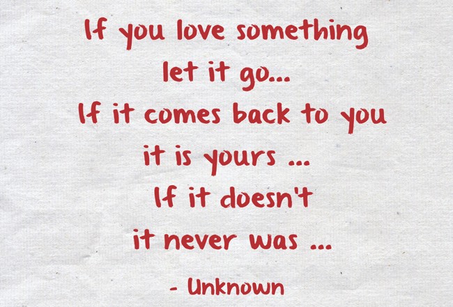 "If you love something let it go... If it comes back to you it is yours ... If it doesn't it never was ... "