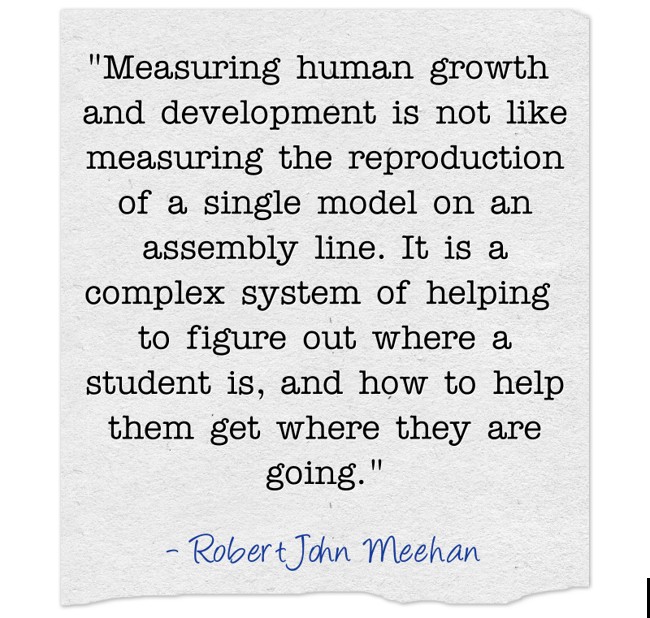 ""Measuring human growth and development is not like measuring the reproduction of a single model on an assembly line. It is a complex system of helping to figure out where a student is, and how to help them get where they are going.""