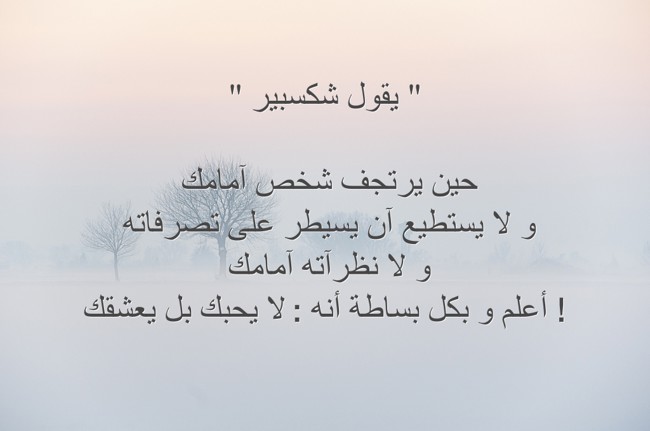 " " يقول شكسبير " حين يرتجف شخص آمامك و لا يستطيع آن يسيطر على تصرفاته و لا نظرآته آمامك ! أعلم و بكل بساطة أنه : لا يحبك بل يعشقك "