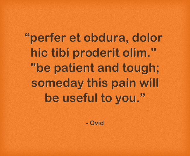 "“perfer et obdura, dolor hic tibi proderit olim." "be patient and tough; someday this pain will be useful to you.”"