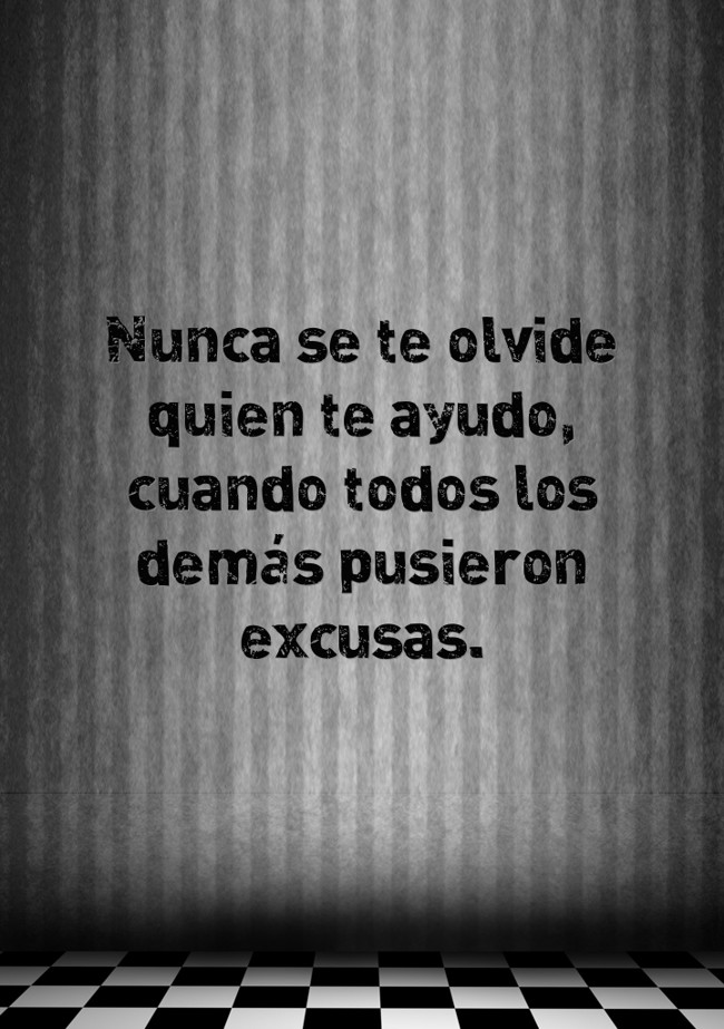 "Nunca se te olvide quien te ayudo, cuando todos los demás pusieron excusas."