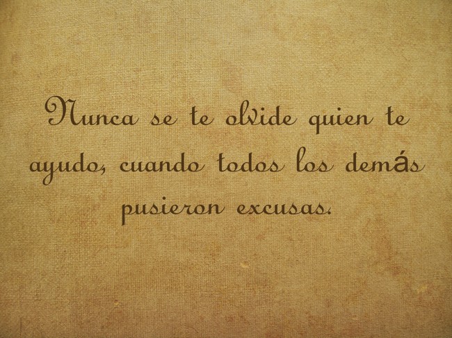 "Nunca se te olvide quien te ayudo, cuando todos los demás pusieron excusas."