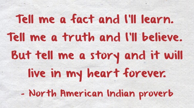 "Tell me a fact and I’ll learn. Tell me a truth and I’ll believe. But tell me a story and it will live in my heart forever."