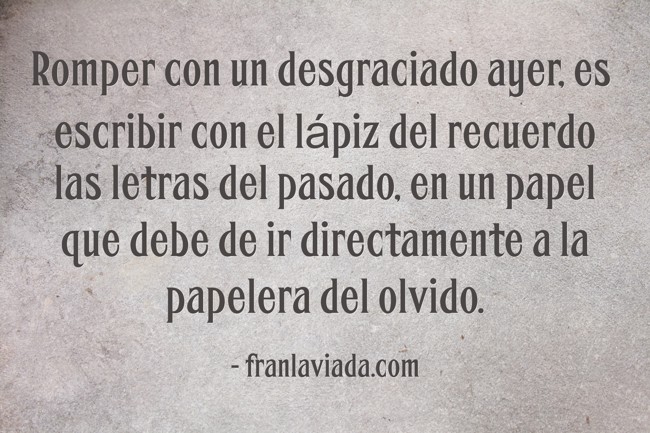 "Romper con un desgraciado ayer, es escribir con el lápiz del recuerdo las letras del pasado, en un papel que debe de ir directamente a la papelera del olvido."
