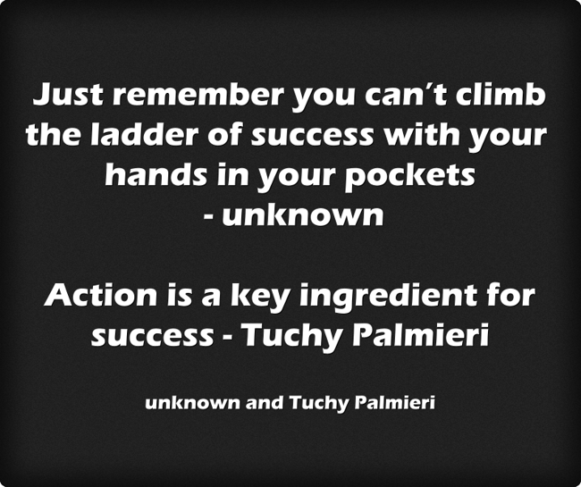 "Just remember you can’t climb the ladder of success with your hands in your pockets - unknown Action is a key ingredient for success - Tuchy Palmieri "