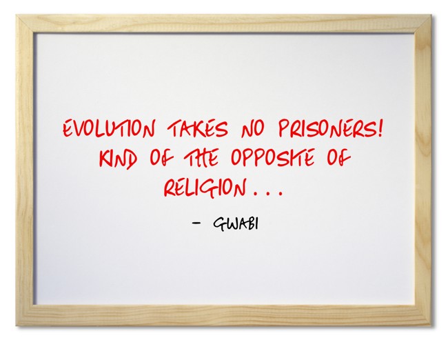 "Evolution takes no prisoners! Kind of the opposite of religion..."