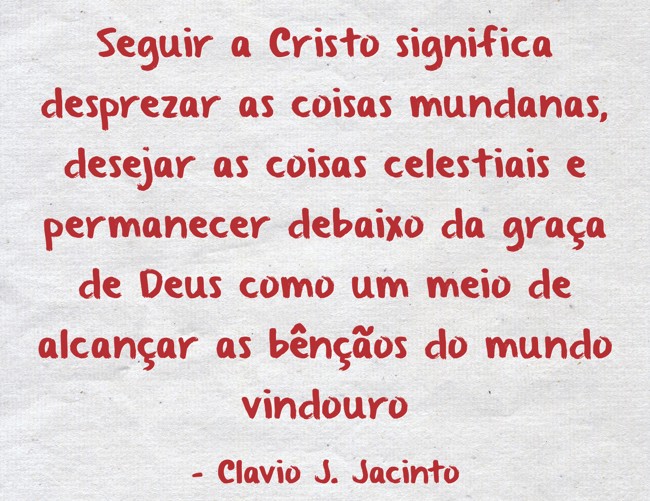 "Seguir a Cristo significa desprezar as coisas mundanas, desejar as coisas celestiais e permanecer debaixo da graça de Deus como um meio de alcançar as bênçãos do mundo vindouro"