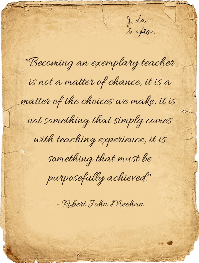 ""Becoming an exemplary teacher is not a matter of chance, it is a matter of the choices we make; it is not something that simply comes with teaching experience, it is something that must be purposefully achieved.""