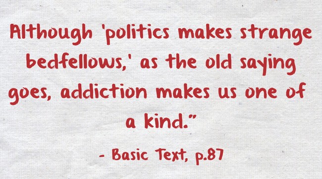 "Although 'politics makes strange bedfellows,' as the old saying goes, addiction makes us one of a kind." "