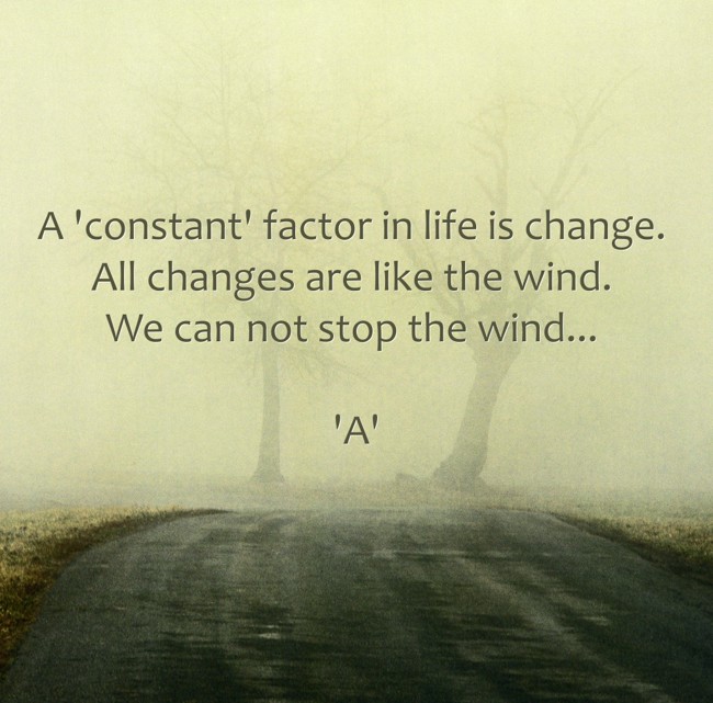 "A 'constant' factor in life is change. All changes are like the wind. We can not stop the wind... 'A' "