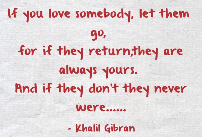 "If you love somebody, let them go, for if they return,they are always yours. And if they don't they never were...... "