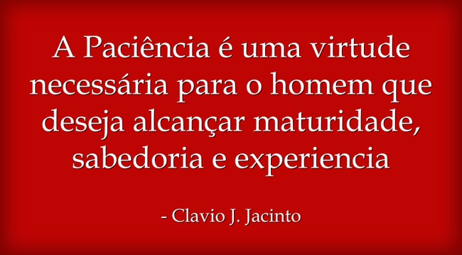 "A Paciência é uma virtude necessária para o homem que deseja alcançar maturidade, sabedoria e experiencia"