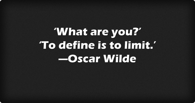"‘What are you?’ ‘To define is to limit.’ —Oscar Wilde"