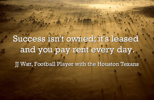 "Success isn't owned; it's leased and you pay rent every day."