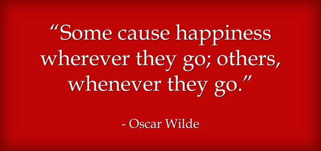 "“Some cause happiness wherever they go; others, whenever they go.”"