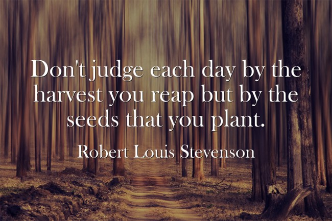 "Don't judge each day by the harvest you reap but by the seeds that you plant. "