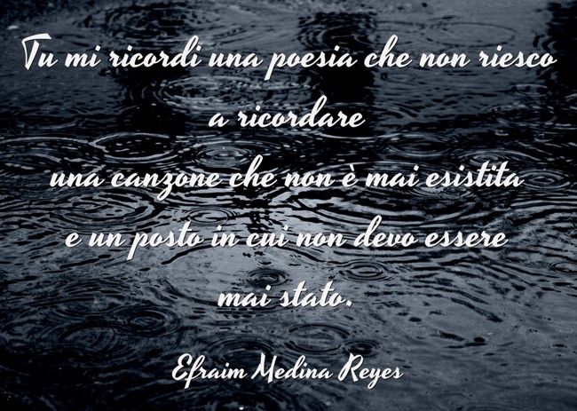 "Tu mi ricordi una poesia che non riesco a ricordare una canzone che non è mai esistita e un posto in cui non devo essere mai stato."