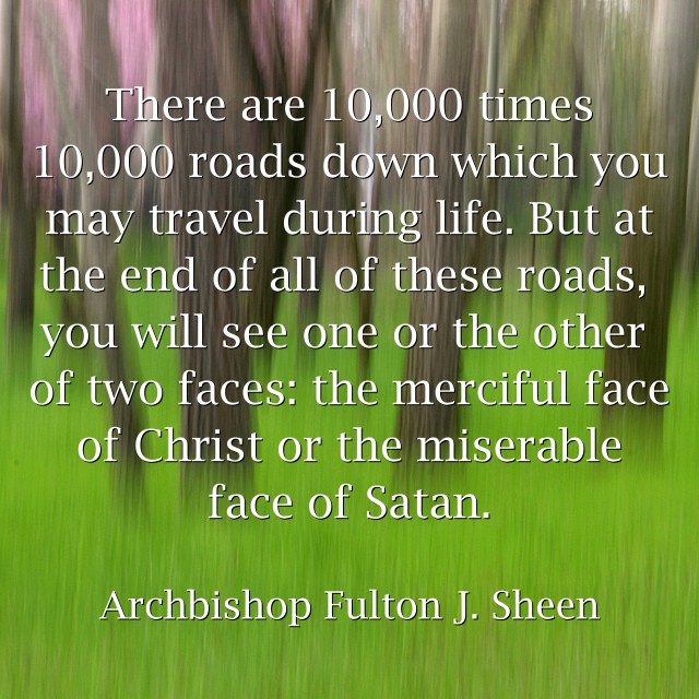 " There are 10,000 times 10,000 roads down which you may travel during life. But at the end of all of these roads, you will see one or the other of two faces: the merciful face of Christ or the miserable face of Satan."
