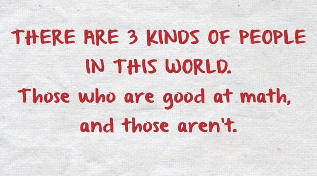"THERE ARE 3 KINDS OF PEOPLE IN THIS WORLD. Those who are good at math, and those aren't."