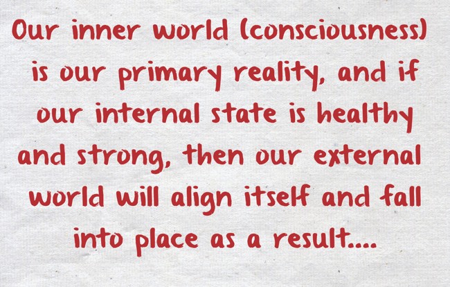 "Our inner world (consciousness) is our primary reality, and if our internal state is healthy and strong, then our external world will align itself and fall into place as a result...."