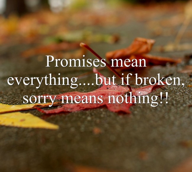 "Promises mean everything....but if broken, sorry means nothing!!"