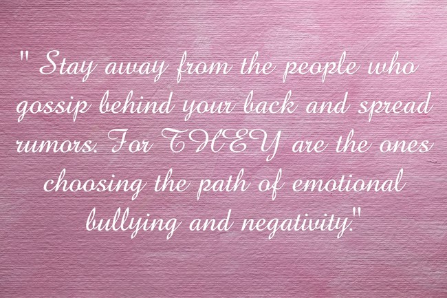 "“ Stay away from the people who gossip behind your back and spread rumors. For THEY are the ones choosing the path of emotional bullying and negativity.""