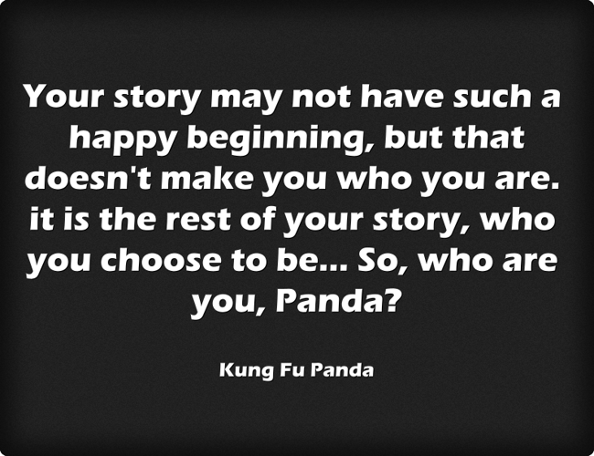 "Your story may not have such a happy beginning, but that doesn't make you who you are. it is the rest of your story, who you choose to be... So, who are you, Panda?"