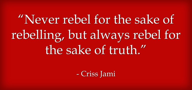"“Never rebel for the sake of rebelling, but always rebel for the sake of truth.” "