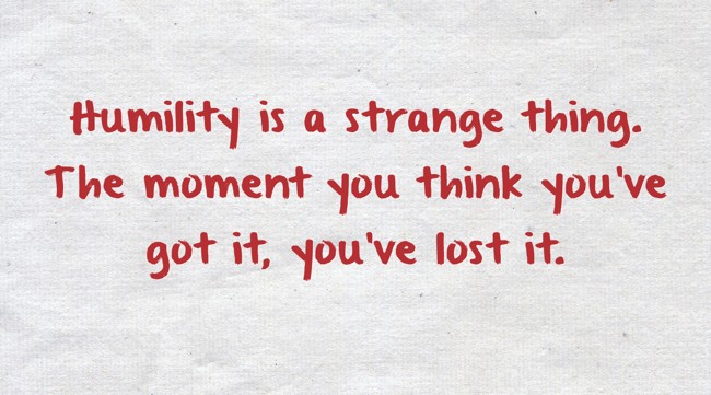 "Humility is a strange thing. The moment you think you've got it, you've lost it."