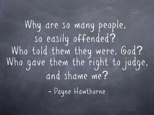 "Why are so many people, so easily offended? Who told them they were, God? Who gave them the right to judge, and shame me?"