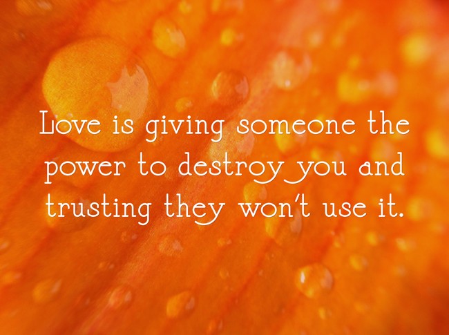 "Love is giving someone the power to destroy you and trusting they won't use it."