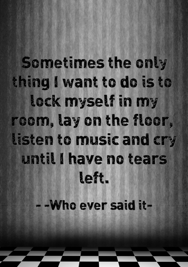 "Sometimes the only thing I want to do is to lock myself in my room, lay on the floor, listen to music and cry until I have no tears left."