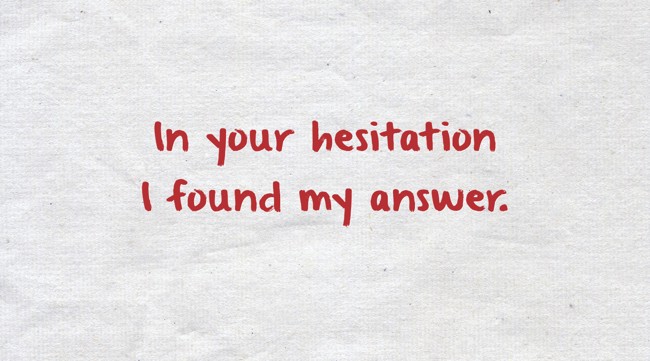 "In your hesitation I found my answer."