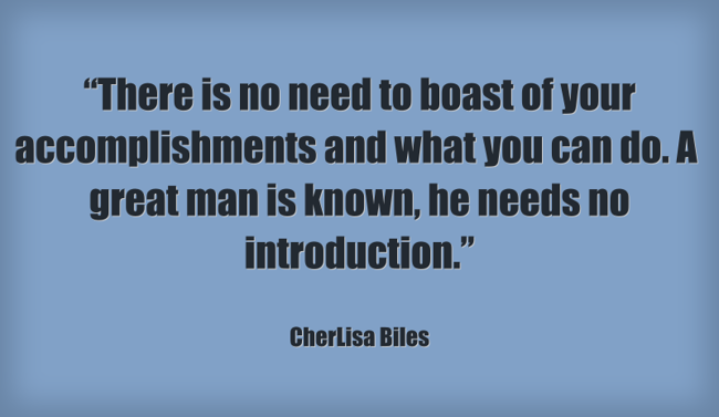"“There is no need to boast of your accomplishments and what you can do. A great man is known, he needs no introduction.” "