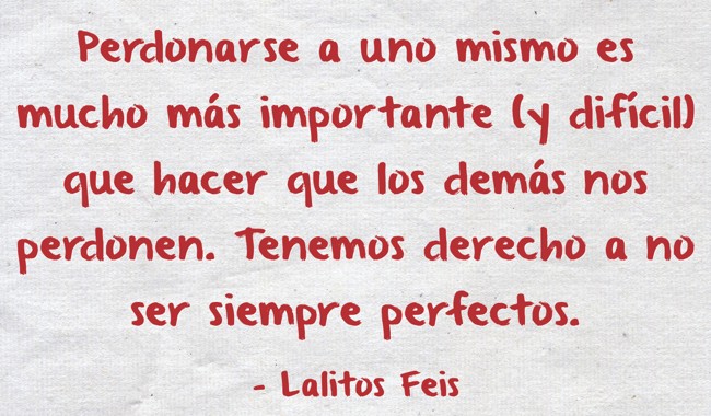 "Perdonarse a uno mismo es mucho más importante (y difícil) que hacer que los demás nos perdonen. Tenemos derecho a no ser siempre perfectos."