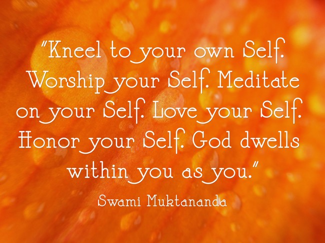 ""Kneel to your own Self. Worship your Self. Meditate on your Self. Love your Self. Honor your Self. God dwells within you as you.""