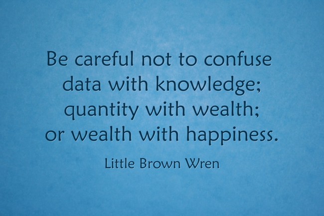 "Be careful not to confuse data with knowledge; quantity with wealth; or wealth with happiness."