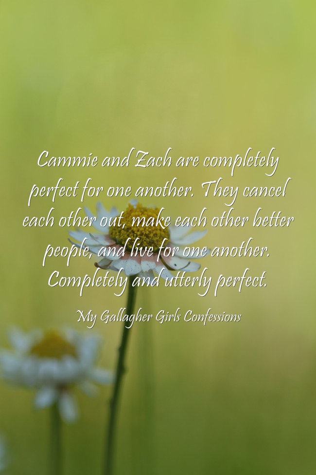 "Cammie and Zach are completely perfect for one another. They cancel each other out, make each other better people, and live for one another. Completely and utterly perfect."