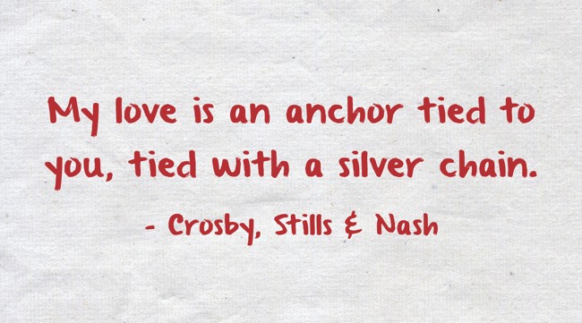 "My love is an anchor tied to you, tied with a silver chain."